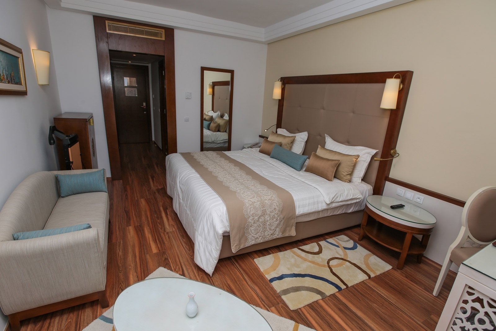 Sousse Palace Hôtel & Spa 5 * est un hôtel de luxe situé en plein centre historique de Sousse, “la perle du Sahel”, l’une des villes les plus vibrantes en Tunisie, à 140 km au sud de la capitale. L’hôtel, fondé en 1966 et entièrement rénové en 2016, dispose d’un accès direct à la mer et offre un total de 250 chambres au décor exquis qui allient design et confort, offrant le cadre idéal pour profiter d’un séjour de luxe au cours d’une escapade de loisirs ou d’un voyage d’affaires à Sousse.
